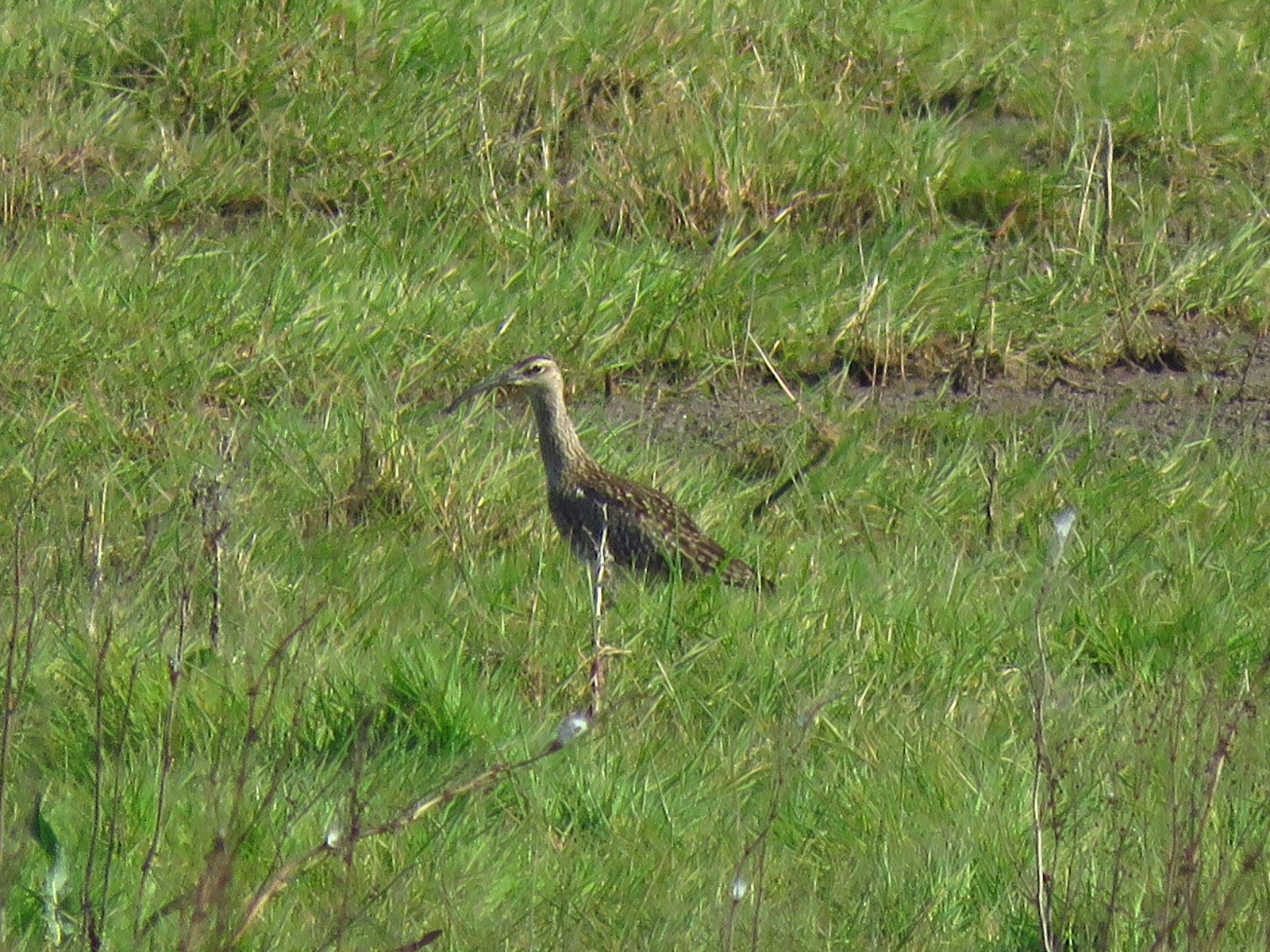 I carried on with my walk to Trent hide. A number of damselflies near the hide, and also a nnursery web spider, Pisaura mirabilis, my first this year. The nice surprise was on the way back, when a Whimbrel flew in and fed on the wet grassland.