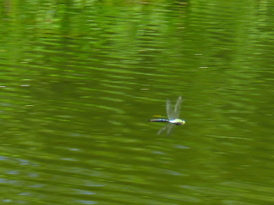 A male Emperor Dragonfly patrolled low over the water and a female was egg laying. It caught some larger prey and appeared to land on the trees, but I couldn't locate it.