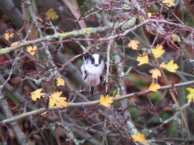 A flock of Long-tailed tits made their way across the drain.