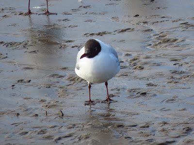I reach North Bridge and I take the path by the river Hull. It is almost low tide. A Redshank feeds on the mud, closely observed by a Black-headed gull. I count 9 Redshanks on the stretch from North Bridge to The Deep.