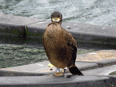 I find the shag (top shot) in the far end of the quay. Shags are quite uncommon birds in the Hull area. There was one at East Park for a week or so in December 2018 and they are occasional in the Humber, where records tend to be in the winter months. In February 2018 I saw one in the Humber, it had a blue ring, but I couldn't read it. The shag in Princes Quay also has a ring, its finder, fellow naturalist @scarpermac on Twitter reported it. This bird was confirmed to have been ringed as a chick, one of a brood of three, last June in the Isle of May, an island at the mouth of the Firth of Forth in Scotland.
