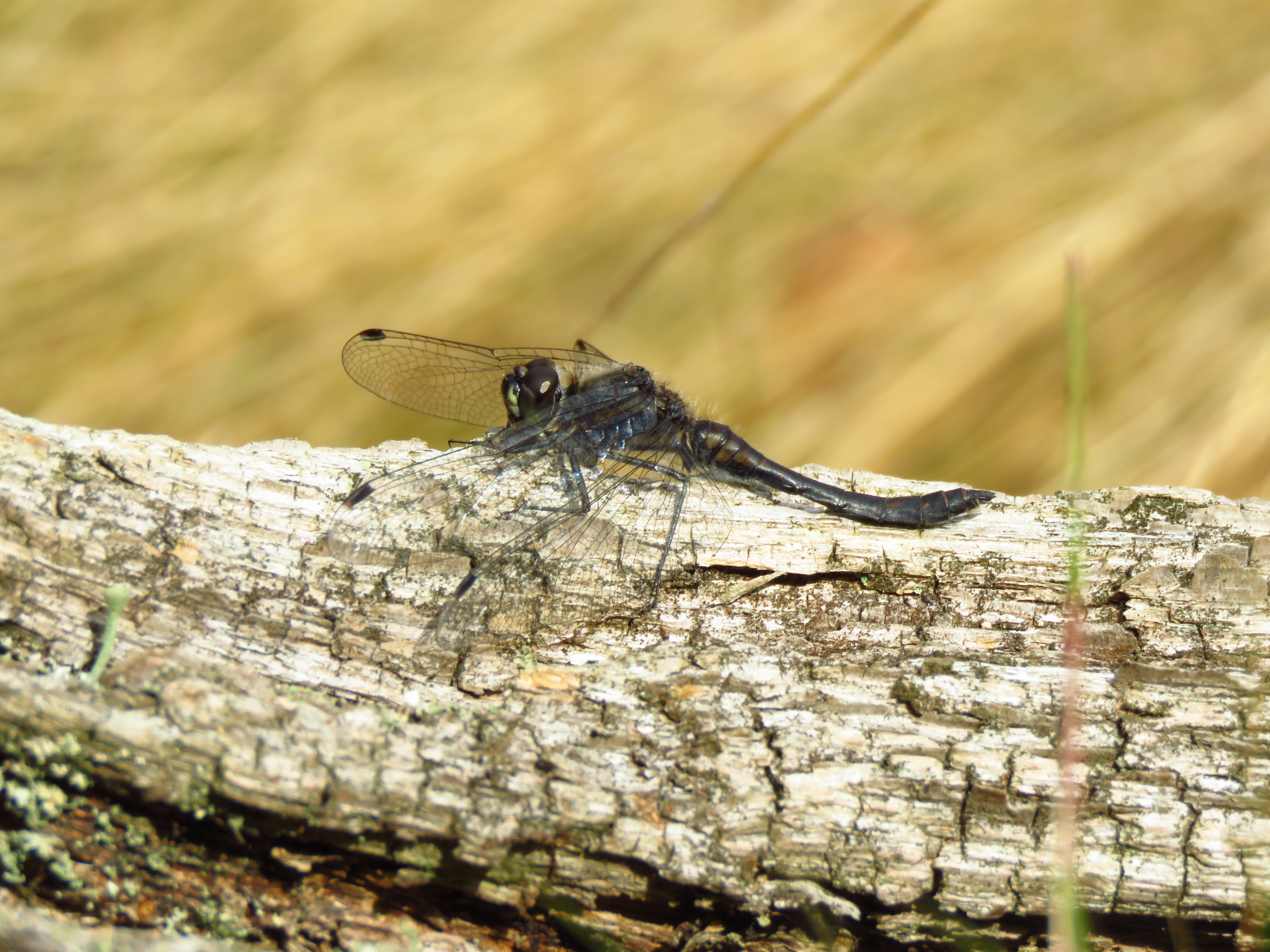 There were a minimum of 4 male Black Darters (top shot and below), which I had never seen in this site. I end up having lunch by one of them. It keeps returning to the same log, which it shares with a common darter, and readjusting position each time it lands to catch the sun.