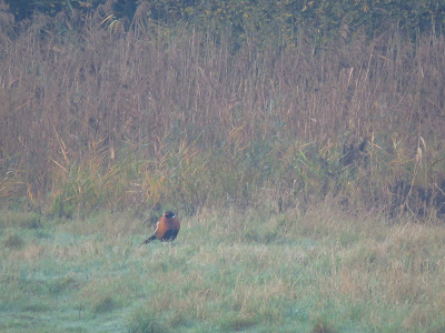 The first frost of the year, it was misty early morning, especially over the drain and the river. I made my way to Oak Road Lake via Beverley Road. I remembered that the last time I walked by the river in September I did a bush-cricket survey. The season has definitely turned: today the sun shone amongst the light cloud early on, then only the light clouds persisted, increasing the wintry feel.