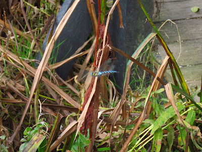 A female Long-winged Conehead catching the sunshine on a wall. I managed some recordings of males calling too.